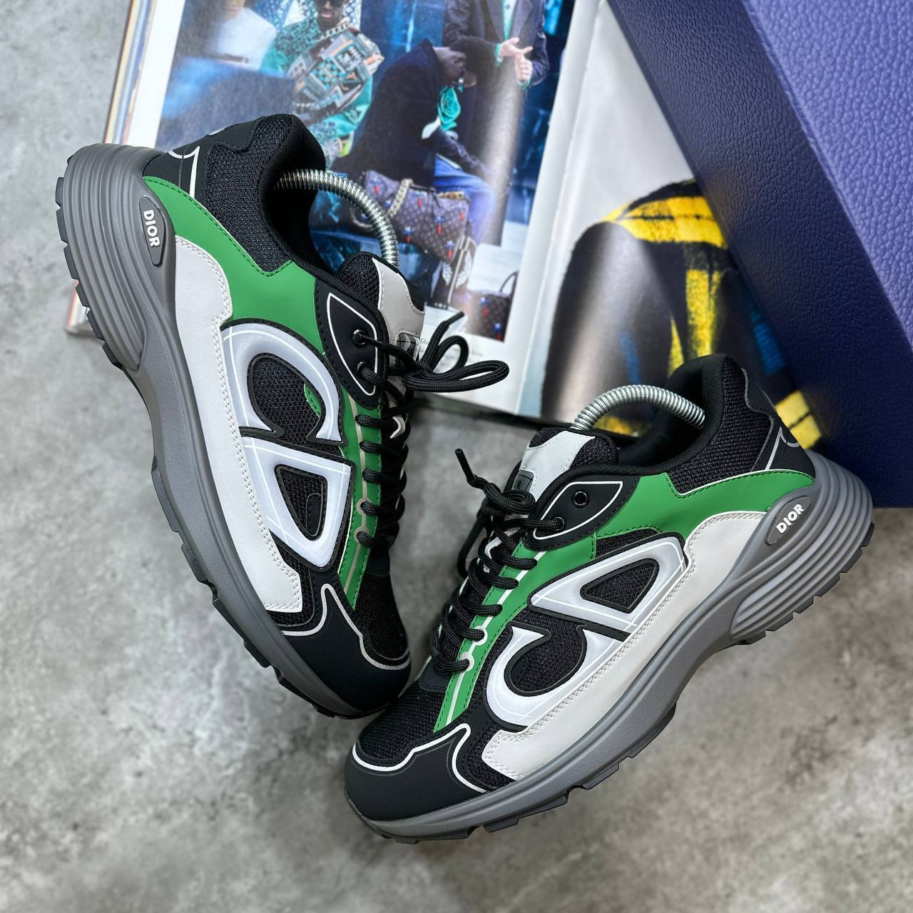 The B30 sneakers fuse elegance and a sportswear attitude. Inspired by the world of running, this new style brings together exceptional technical materials to offer flexibility and lightness. As an ultimate detail, the "CD" logo with its aerodynamic graphics unfurls on each side in a reflective version, as well as on the sole and heel.
