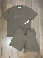 The Fear of God Essentials Summer Set is a stylish, coordinated outfit that includes a t-shirt and matching shorts. Made from a high-quality cotton-blend fabric, the set offers a relaxed, oversized fit for maximum comfort. The t-shirt features subtle Essentials branding on the chest and a rubberised logo patch on the back, while the shorts have an elastic waistband with adjustable drawstrings for a customised fit. The neutral color and minimalist design make this set versatile and perfect for casual, everyday wear with a modern, streetwear-inspired aesthetic.
