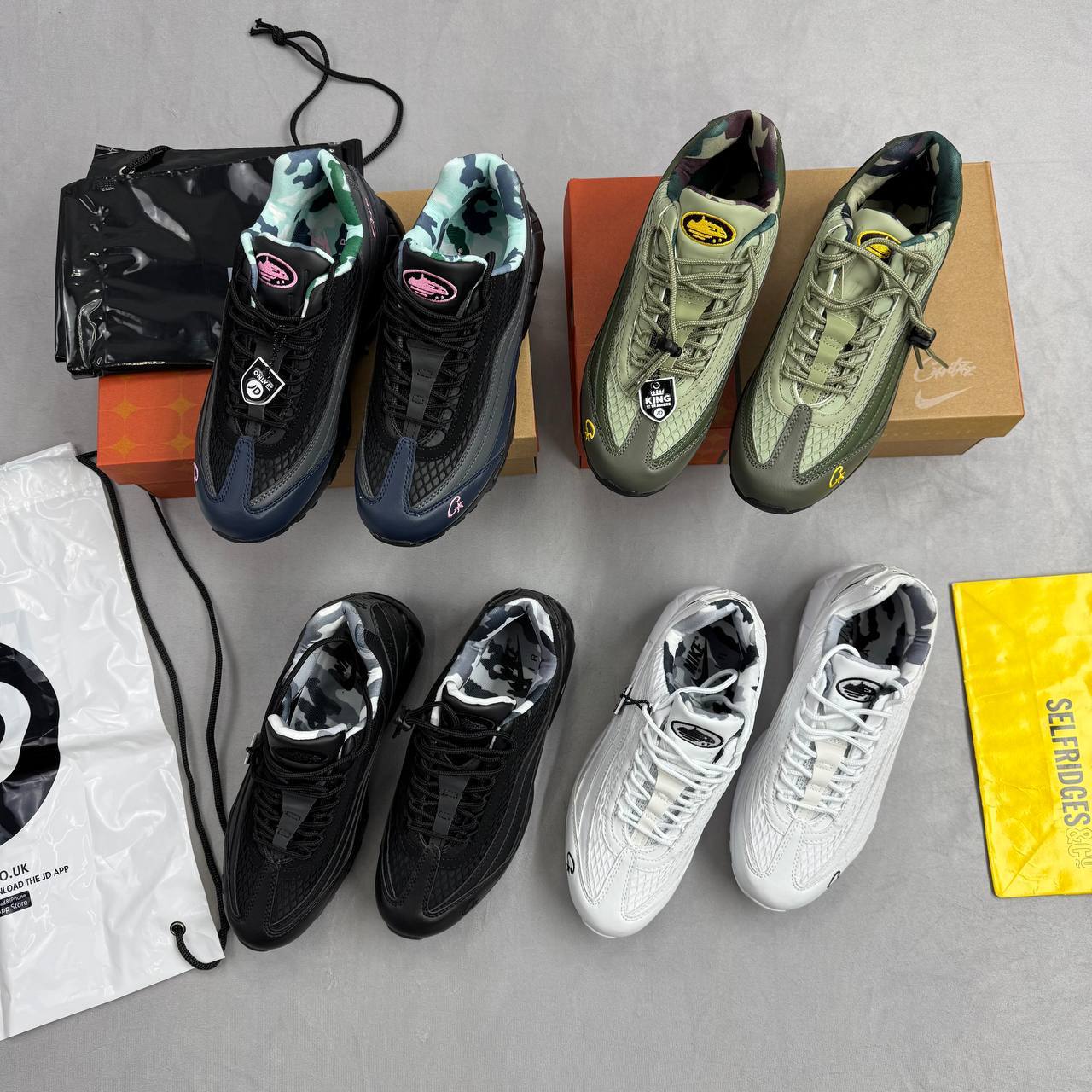 The Nike Air Max 95 Corteiz taps into bold energy with a rugged, tactical spin. Built atop a black leather upper with diamond-knit mesh, this pair leans into a utilitarian vibe that doesn’t sacrifice style. The layered netting, beefed-up tongue and collar, and toggle lacing system all serve up function and fashion in equal measure—perfect for those constantly on the move. Corteiz brings its unmistakable signature to the collab, dropping in co-branded hits on the heel and tongue along with a slick Alcatraz logo. This isn’t just another streetwear drop—it’s a full-on campaign. The tour yellow Air Max units punch through the black midsole with energy, while the clean sockliner ditches camo for a glossy black finish, setting this iteration apart from previous releases. Designed for the streets but ready for anything, it’s a shoe that moves how you do.